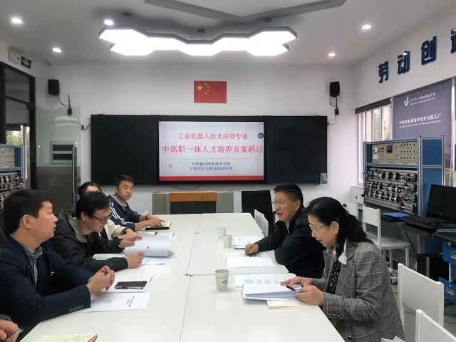 11月5日下午北仑职高工业机器人技术应用专业的多位专业教师来到我校,与我院智能控制技术专业教师再一次对接中高职一体化人才培养方案,就具体课程内容衔接进行了详细认真的研讨。