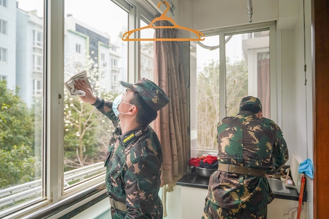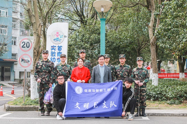 3月3日,在文华社区内,集结了一支特殊的队伍,他们是由信息与智能工程学院的文明E支队、商学院燎原军魂团的退伍大学生和鄞州区首南街道文华社区退役军人服务站的老兵们组成的志愿者服务队,正在为社区居民提供“菜单式”志愿服务。