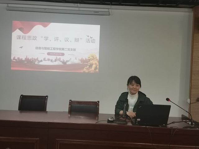 推进会后,学院各教工支部以“课程思政‘学、评、议、辩’教研活动”为主题,开展党日活动,由2021-2022学年第二学期课程思政教学改革项目申报负责人就申报材料进行汇报,大家进行现场讨论并提出修改意见。