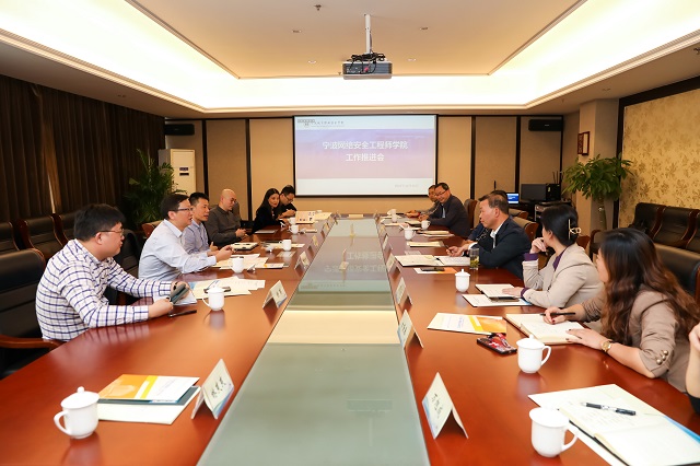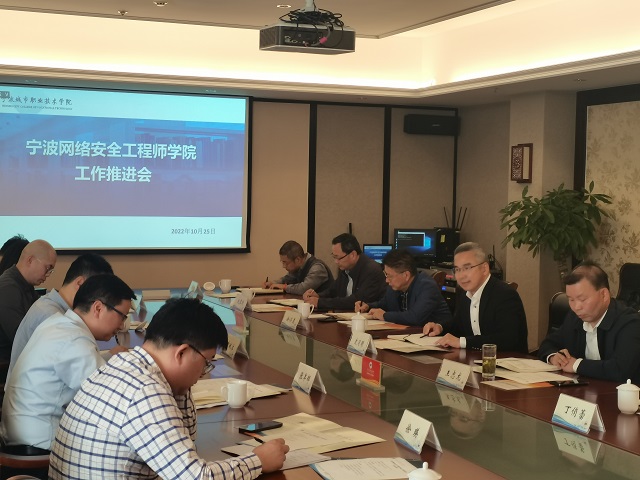 会议由王志龙副院长主持,参加会议的有宁波市教育局职教处章斌立副处长、宁波市职业技术教育中心学校张军辉书记等5人、kaiyun开云官方在线入口史习明院长等8人、宁波绿盟网络安全技术有限公司丁奇副总经理。