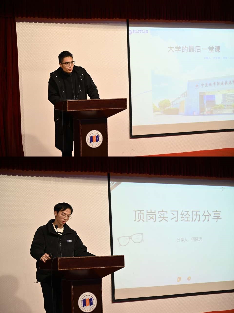 党总支书记江乐平做顶岗实习安全教育,他指出,从校园到企业,同学们的身份在变,但安全防范的标准和意识决不能变。江书记叮嘱同学们,顶岗实习是同学们踏入社会的重要一步,面对纷繁复杂的社会面,大家要提前做好思想准备,提高防范意识,注意人身财产安全,尤其要严防各类电信诈骗,抵制黄赌毒等不良诱惑,严守法纪校规。同时,要根据当前疫情防控政策和我校疫情防控要求,当好个人疫情防控的责任人,全身心投入到顶岗实习中,在企业中进行实践学习,提升专业技能,为后续就好业打下扎实的基石。副院长潘世华详细布置了顶岗实习阶段相关教学安排,叮嘱同学们走上实习岗位的同时,不掉队,不打折,圆满完成人才培养方案规定的学业任务。动员会上,来自19智控B班的卢永好同学和20计算机A2班的何昌远同学结合自身实习经历和对工作岗位的认知为学弟学妹作了精彩的分享。