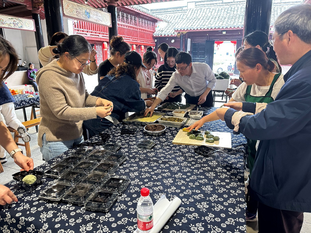 全体女教工参观了位于奉化萧王庙街道的青云村该村因村中联步青云坊而得名村中名人辈出,据《泉溪孙氏宗谱》载明有孙胜进士登第清有孙上登创办湖澜书塾民国有追随孙中山参加辛亥革命的孙鹤皋等。参观完青云村后,女教职工们一起DIY制作青团,浓郁的气氛和欢快的氛围让老师们倍感轻松。根据活动安排,老师们还参观了奉化校区在学生导游的介绍下,大家依次参观了实训室、餐厅、教学楼、图书馆等场所。