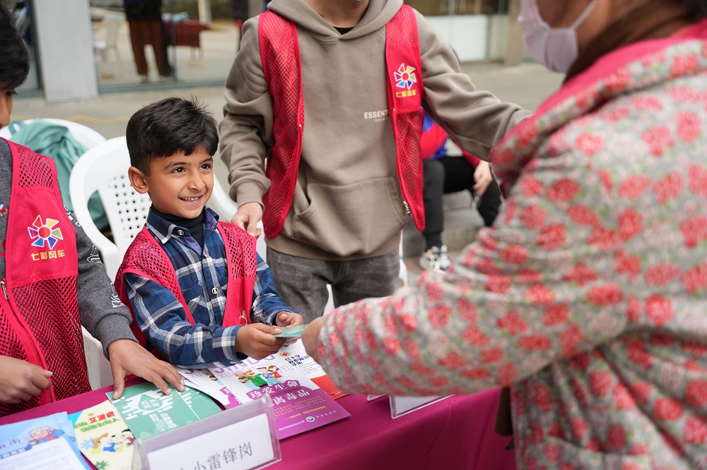活动现场,英姿飒爽的兵哥哥们通过动画片向小朋友们介绍了雷锋,让小朋友们知道了雷锋是一名人人敬仰的解放军战士。兵哥哥们向小朋友分享了从军时乐于助人、奉献自我的事迹,一个个生动的讲述引得小朋友们纷纷鼓掌,并投来崇敬的目光。活动还特别设置了小小雷锋岗,兵哥哥们带领小朋友给社区居民发放垃圾分类、防电信诈骗等各类宣传资料。信息与智能工程学院的指导老师表示:“这样的活动我们会经常举办,让孩子们接受精神洗礼,切实传承好,发扬好雷锋精神,让红色基因薪火相传!”