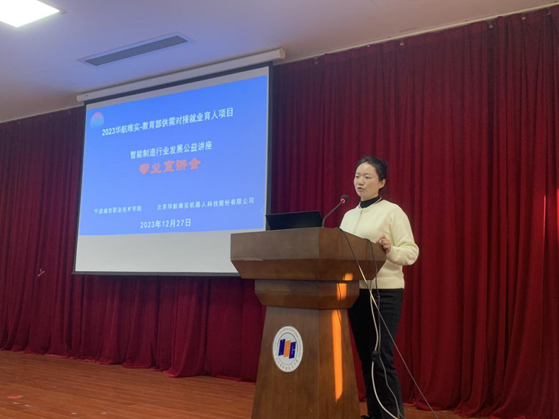 授牌仪式后,张微为在场学生做题为“争做智能时代的掌舵人”的公益讲座,详细介绍了北京华航唯实就业育人项目的实施流程、具体内容以及当前制造企业急需的就业岗位。她鼓励同学们要掌握好专业核心技能,做好职业规划,为今后的就业做好充足准备。
