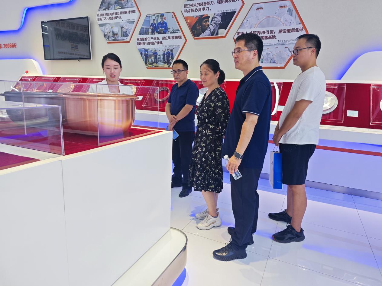 会后,袁灵素陪同参观了公司装配车间,介绍了靶材生产过程、设备自动化程度等情况。