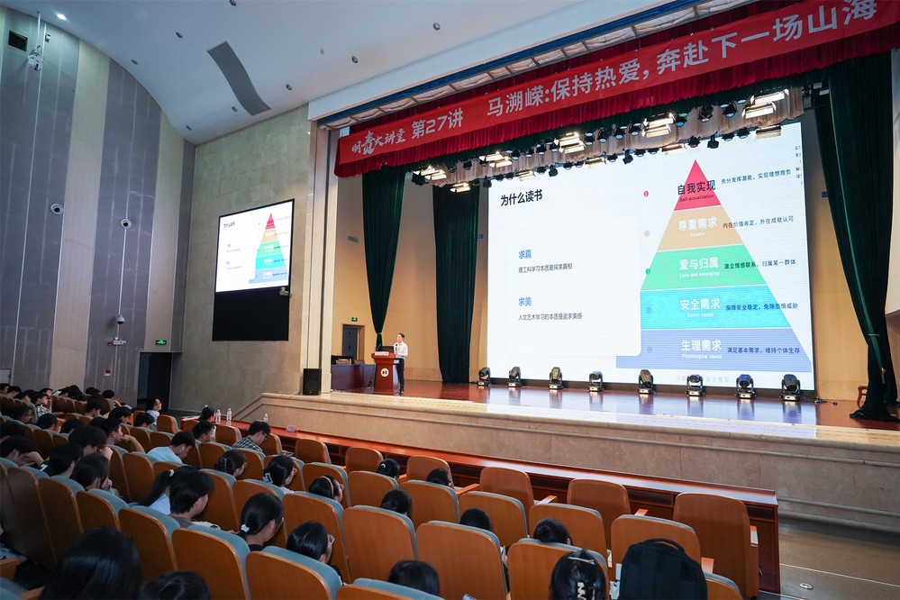 “2006年毕业以后,我入职过管理咨询公司,在保险公司做过财务分析,还做过电话销售……”马溯嵘从自身经历讲起,与同学们分享了自己从求学到工作的成长心得。“我们为什么要读书?”他引用管理学中的马斯洛需求层次理论,指出读书既为求真,也为求美,在信息爆炸的时代,要用知识武装自己,并始终保持独立思考和批判性思维。“你走过的路,你读过的书,会在不知不觉中提升你的认知。”