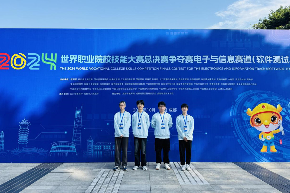10月26日至27日,2024年世界职业院校技能大赛电子与信息赛道(软件测试小组)总决赛在成都职业技术学院举行,来自全国31个省、自治区、直辖市和新疆生产建设兵团的62支高职院校队伍参赛。经过激烈角逐,学校信息与智能工程学院教师孙超红、李利杰指导的诸狄钏、李嘉辉、姚星宇、徐乐团队以平行组第一,全组第三的成绩斩获金奖,实现了学校在该赛项中的历史性突破。