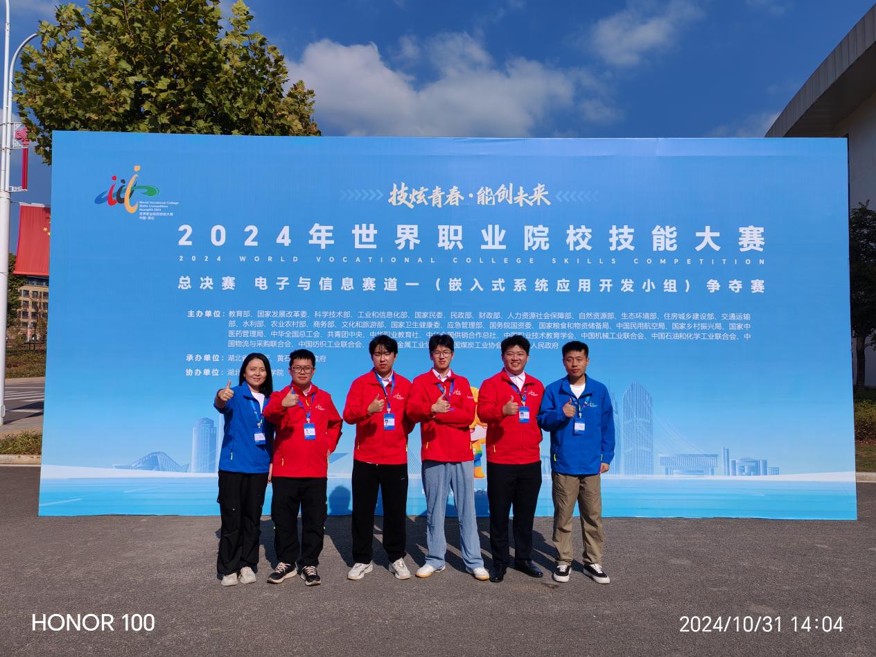 10月30日至31日,2024年世界职业院校技能大赛电子与信息赛道(嵌入式系统应用开发小组)总决赛争夺赛在湖北工程职业学院举行。来自全国31个省、自治区、直辖市和新疆生产建设兵团的61支高职院校队伍参赛。经过激烈角逐,学校信息与智能工程学院教师雷霞、李家豪指导的郑顺博、江子健、陈振轩、包科宇团队以平行组第四的成绩获得争夺赛铜奖。