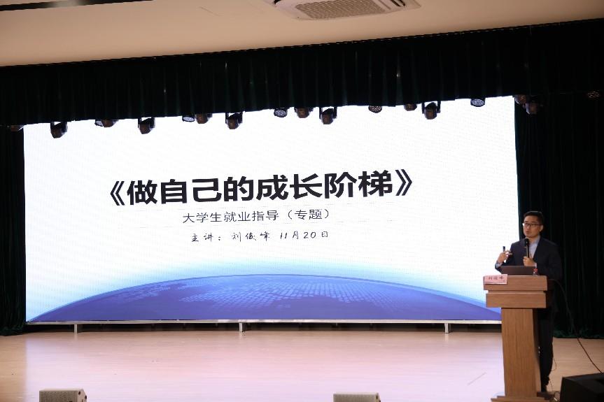 “职场人”做好工作的技巧是什么?现场,刘俊峰以《做自己的成长阶梯》为题,分享了自己的职业生涯经历。谈到如何应对从“学校人”到“职场人”的变化,他鼓励同学们要认清当前的时代特征,对自己进行多维分析。说起职业规划,刘俊峰用一个个生动的职场小故事,提醒同学们要积极从“我是谁”、“我该做什么”、“我该怎么做”三个维度提早做好复盘评估。对于即将进入职场的大学生们,他也给出了自己的“职场宝典”:树立“当责心态”、“积极心态”和“执行心态”,调整自我适应企业环境。互动交流环节中,面对同学们的“职场困惑”,刘俊峰耐心解答,细致引导,现场掌声一片。