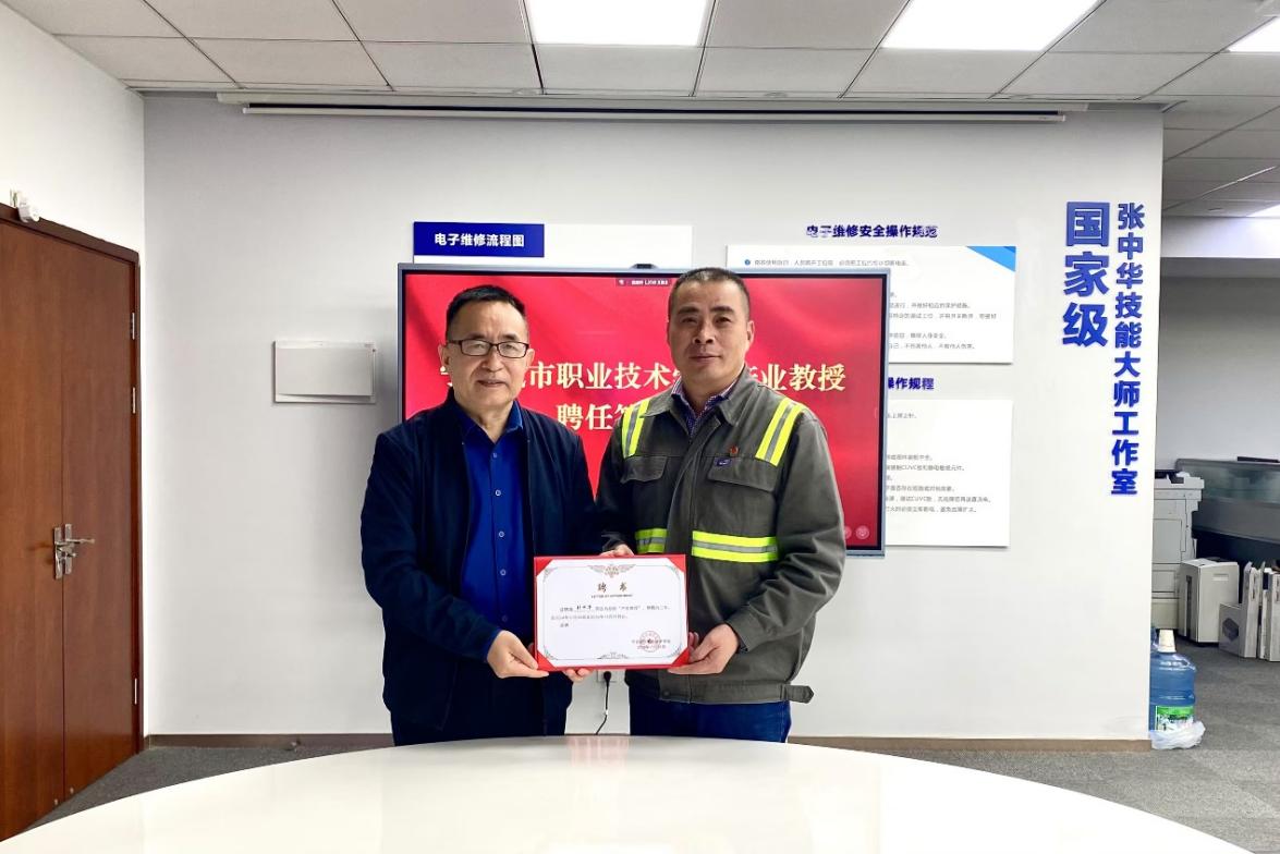 会前,潘世华一行还前往张中华全国技能大师工作室就“产学共建”项目进行深入探讨,并正式聘请张中华为学校的“产业教授”。双方期望以此次交流为契机,进一步加强合作,推动共建成果落实落地。
