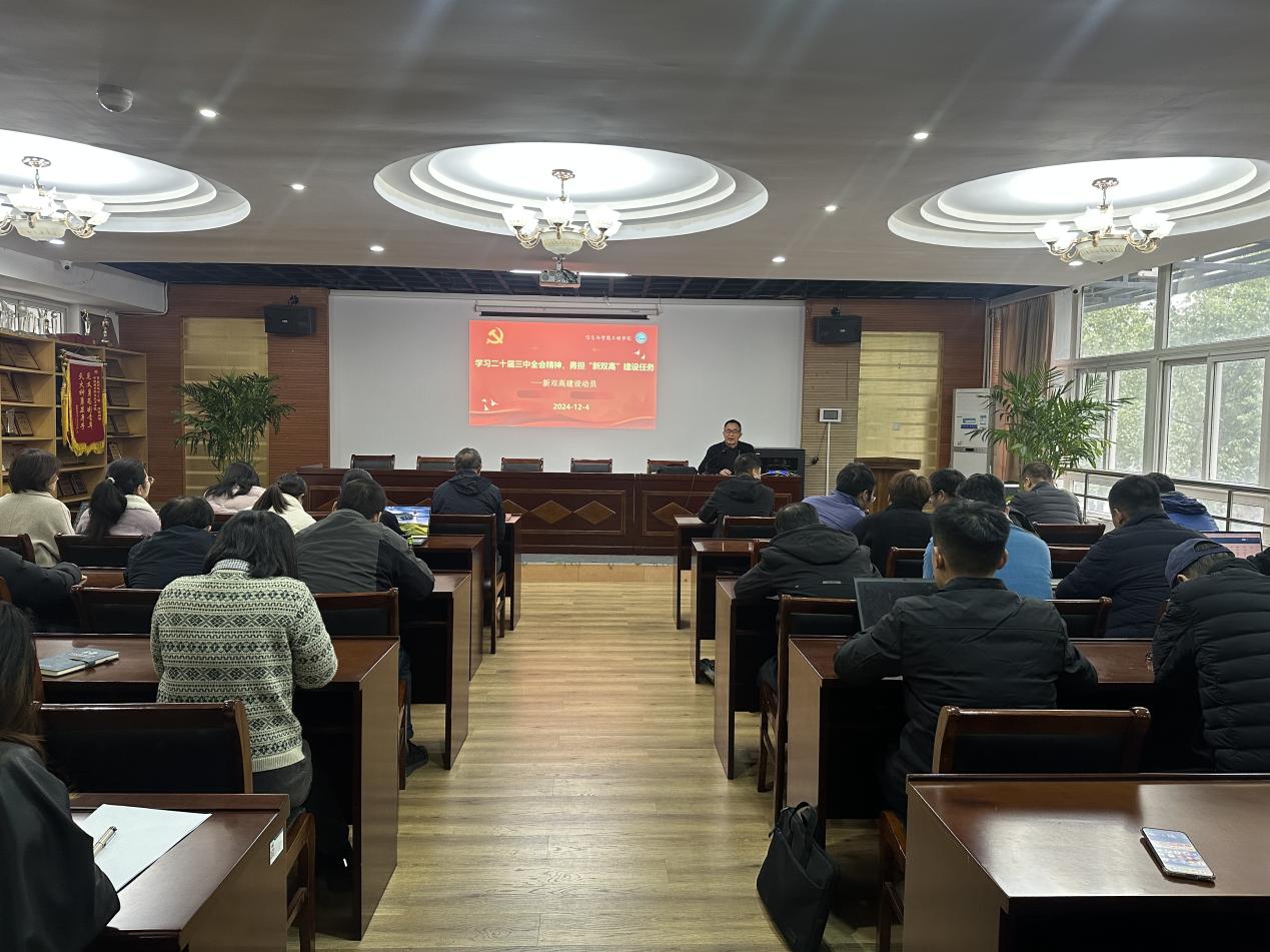 12月4日,信息与智能工程学院在9-215召开党的二十届三中全会专题学习会暨新双高申报动员会,学院党总支书记潘世华主持。