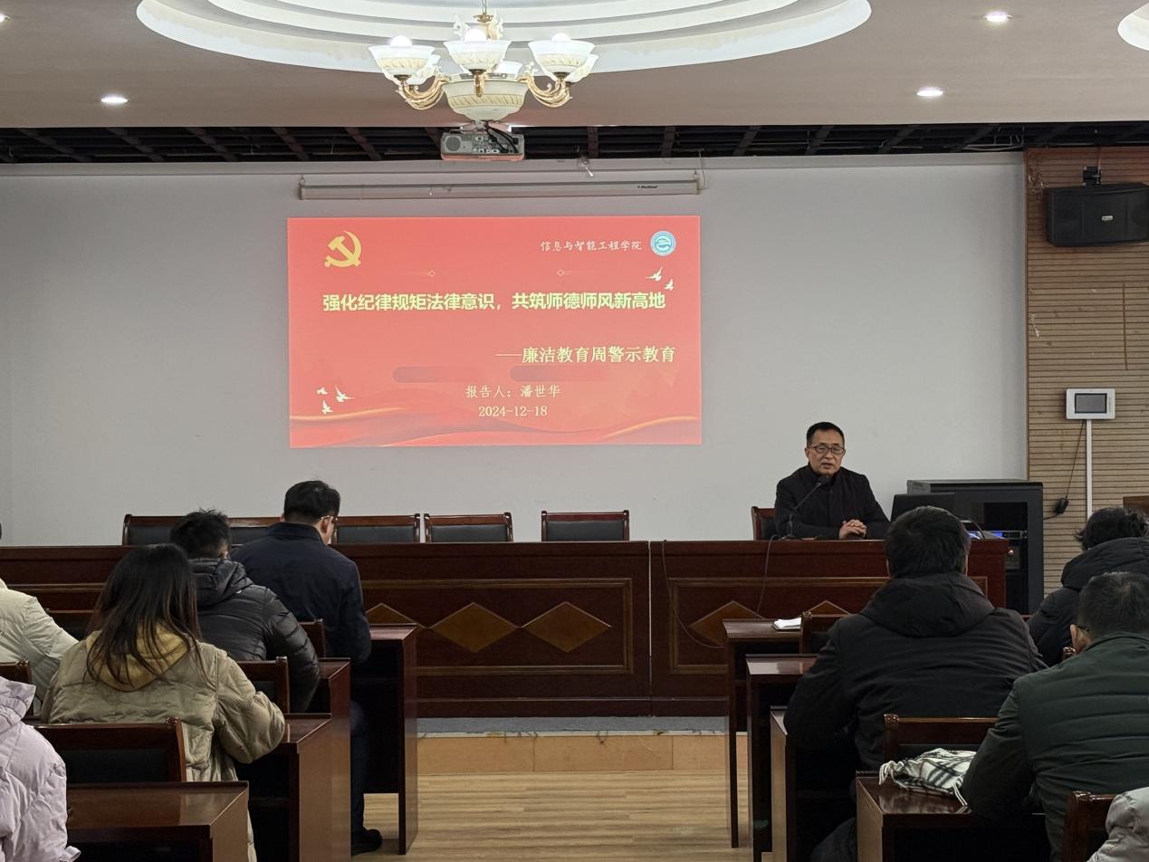 12月18日,信息与智能工程学院召开“廉洁教育周”专题会议暨警示教育,学院党总支书记潘世华主持会议。